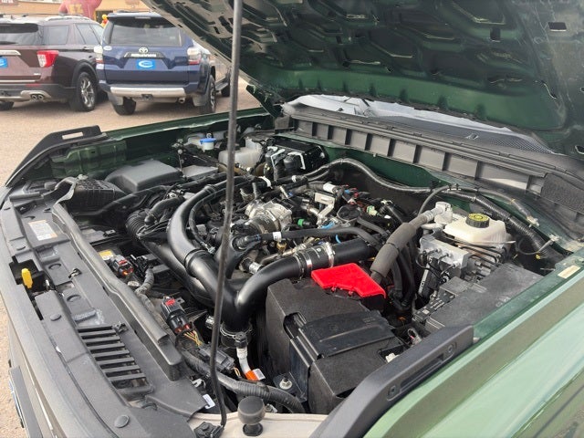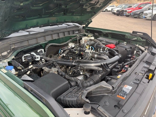 Green Metallic 2022 Ford Bronco Black Diamond 4WD 10-Speed Automatic 2.7L EcoBoost V6 Bronco Black Diamond, 4D Sport Utility, 2.7L EcoBoost V6, 10-Speed Automatic, 4WD, Green Metallic, Dark Gray W/Black Onyx Vinyl, 2-Door Intelligent Access w/Lock/Unlock, ABS brakes, Ambient Footwell Lighting, Auto-Dimming Interior Rear-View Mirror, Compass, Connected Navigation, Dr & Pass Illuminated Sliding Visor Vanity Mirrors, Dual-Zone Electronic Automatic Temperature Control, Electronic Stability Control, Enhanced Voice Recognition, Equipment Group 322A Mid Package, Front Row Heated Seats, Heated door mirrors, Illuminated entry, Low tire pressure warning, Power Outlet - Back Side of Center Floor Console, Rear Parking Sensors, Remote keyless entry, Remote Start System, Traction control.