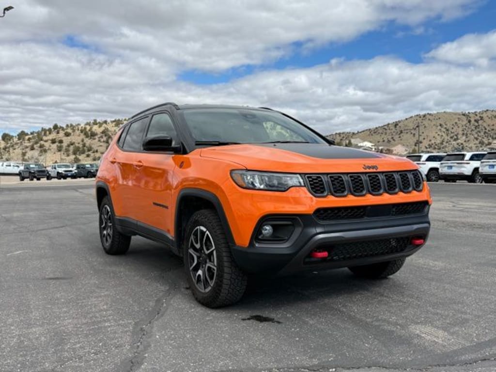 Discover the ultimate adventure-ready SUV with the 2026 Jeep Compass Trailhawk. This captivating model boasts a striking Orange exterior and is powered by a robust 2.0L I4 DOHC engine paired with an 8-Speed Automatic transmission and 4-Wheel Drive. With an impressive fuel efficiency of 23 MPG in the city and 31 MPG on the highway, this Compass Trailhawk combines performance and practicality to elevate your driving experience.